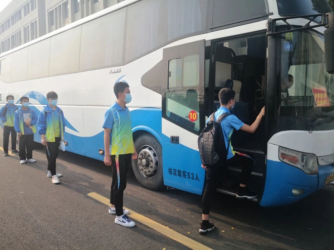 随着北京新一轮疫情爆发,防疫形势进一步严峻,学校为考生提前发放了口罩及各类消毒用品,要求学生自觉戴好口罩,时刻保持间距,有序乘车。