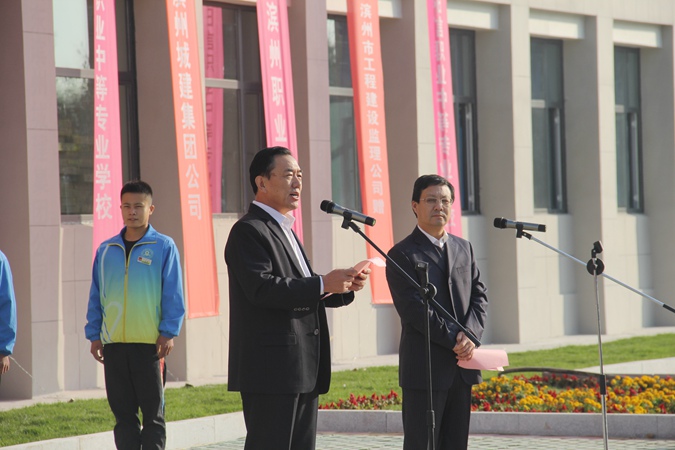 本次活动共有三项议程:第一项,升国旗,唱国歌。第二项,王树林发表了热情洋溢的讲话。王树林首先向关心支持我校发展的区委、区政府及相关部门领导,向为新校区建设付出辛勤汗水的基建、代建全体工作人员,向滨州市工程建设监理处、滨州市城建集团刘传祥项目部及一线工人朋友表示了衷心的感谢,向首批入驻的344名师生致以了最美好的祝愿。其次,简要介绍了新校区建设情况。我校新校区项目是滨城区、滨州市、山东省三级政府2017年重点建设项目,严格按照山东省中等职业学校分级标准的最高标准“示范性”标准建设,总占地面积395亩,一期占地221.9亩,建筑面积112350平方米,可容纳学生4000人。今年2月18日,滨州城建集团正式进场施工,历时244天,整整8个月,1号教学楼建设完成,顺利入住,其余建筑也均按时间节点积极向前推进。建设成果获得了区、市主要领导的认可,被称赞为“技校速度”。最后,对新校学生提出了四点要求,希望同学们能够志存高远、奉献社会,做一名坚忍不拔的拓荒者;执着追求、不懈努力,做一名学有所成的实干者;严于律己、自强不息,做一名品学兼优的成功者;知恩图报、珍惜年华,做一名孜孜不倦的追梦者。第三项,史文莲同代建公司代表、施工企业代表、监理公司代表、审计公司代表、优秀教师代表、及学生代表进行了剪彩。
