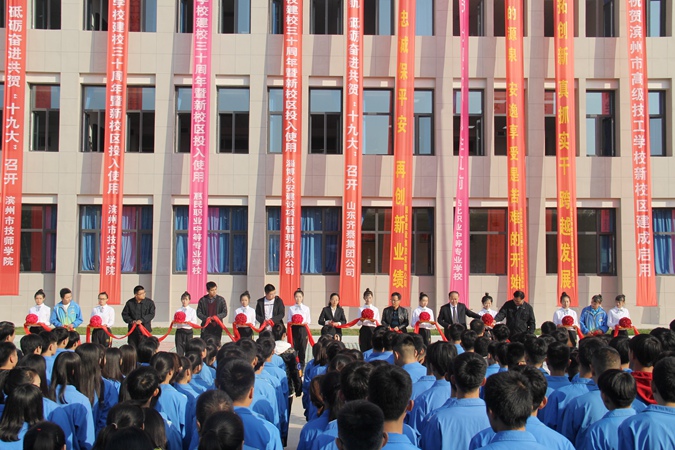 王树林着重强调,新校区启用仪式于8点19分正式举行,19条祝贺条幅为新校区披上红颜,9人剪彩为新校区见证历史,19分钟典礼为滨州市高级技工学校再书新华章,技校人用“19”共贺党的十九大胜利召开,为党的十九大献礼,祝愿祖国更加繁荣富强。