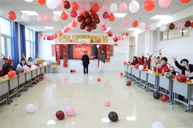 新年,新气象,各班喜气洋洋,热闹非凡。彩带、气球、对联、灯笼……同学们齐心协力,将教室装点得焕然一新,把浓郁的节日氛围烘托得淋漓尽致,为联欢活动打造了一个温馨而欢快的舞台。