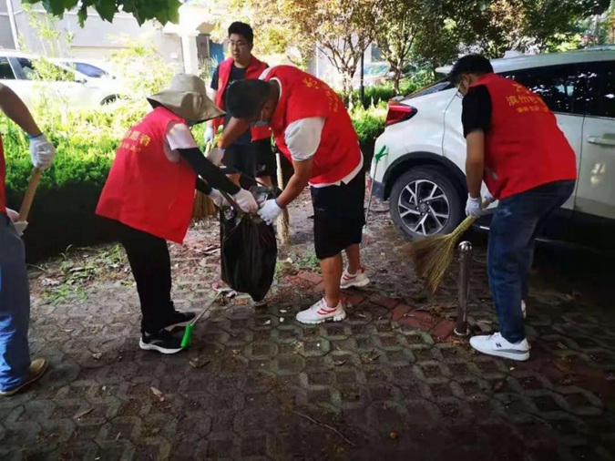 8月1日上午,滨州市高级技工学校30余名教职工在学校党委委员、纪委书记、市纪委监委监察专员宋志刚带领下,来到市西街道泰山名郡小区开展“品质滨城 你我同行”新时代文明实践志愿者服务进社区活动。