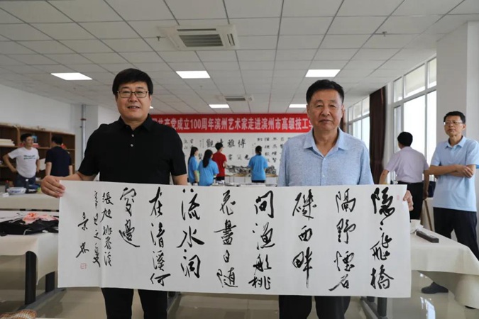 滨州文联党组书记、主席薛希忠,滨州市书法家协会主席高景林,滨州市美术家协会主席李玉泉等11位艺术家参加活动。滨城区委常委、宣传部部长马龙,滨州市高级技工学校党委书记、校长王树林,党委副书记、副校长孟维赞、党委委员、纪委书记、市纪委监委监察专员宋志刚陪同活动。