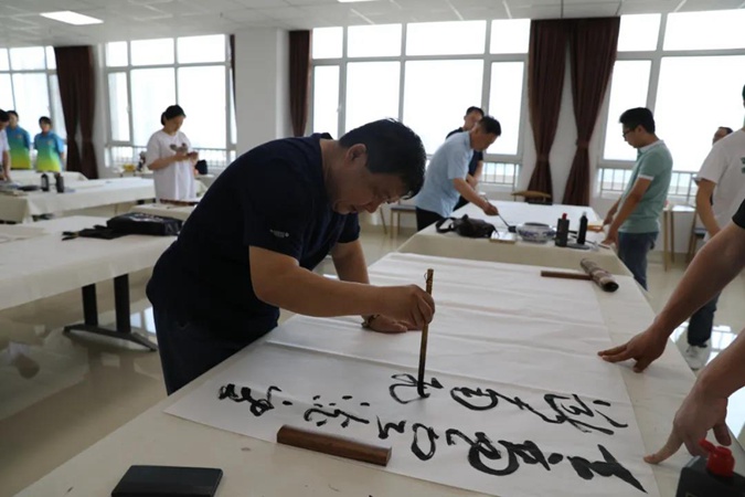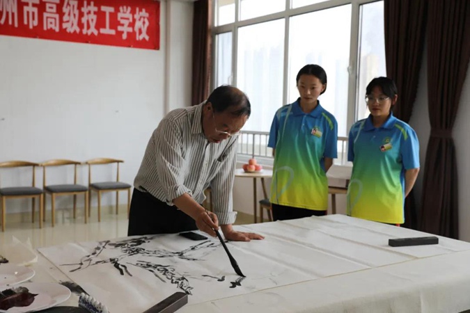 在北平楼书画室,参加活动的书画艺术家,进行了现场创作。他们挥毫泼墨,笔走龙蛇,创作了一幅幅或行云流水,或苍劲有力,或栩栩如生,或妙趣横生的书画艺术作品,表达了对滨州市高级技工学校的恳切赞许及美好祝愿。