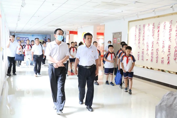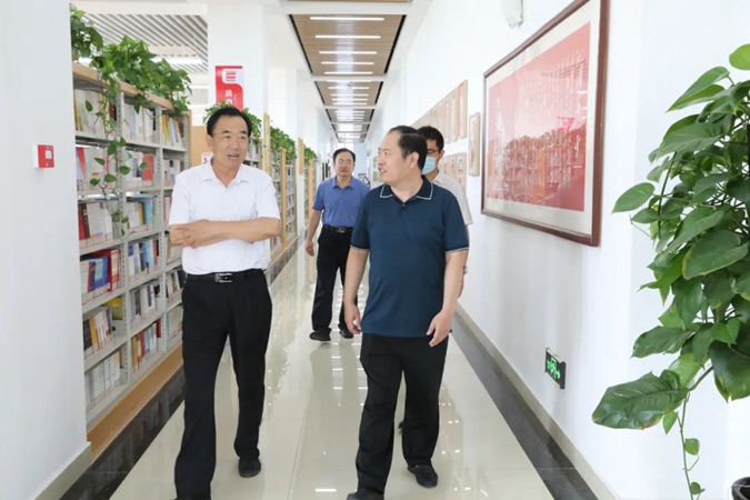 7月27日,滨州市委第四巡察组张立滨、尚强、蔺秋声、张国兴到滨州市高级技工学校参观调研,滨州市教育局职教科科长杨耀楠,滨州市高级技工学校党委书记、校长王树林,党政办公室主任张砚春陪同。