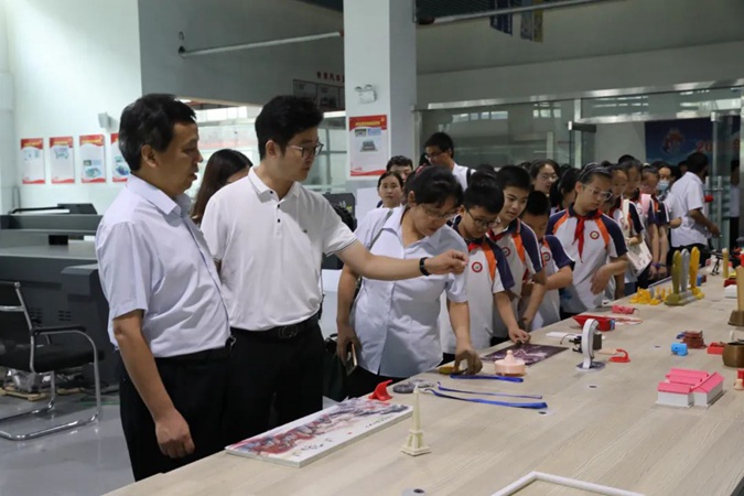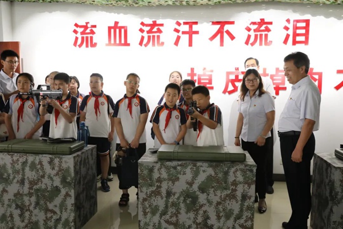 7月29日下午,滨城区第二届第二期“滨小兵”国防军事夏令营50余名小学员到滨州市高级技工学校参观,接受红色教育。