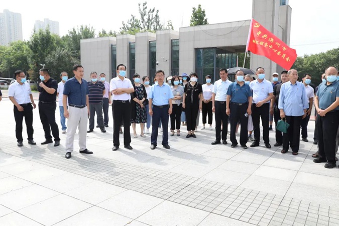 滨州市城镇化服务中心专职副书记刘立军一行60余人到滨州市高级技工学校开展“学红色文化 践初心使命”主题党日活动。滨州市高级技工学校党委书记、校长王树林,体育中学副校长、招生就业科副主任解忠磊陪同。