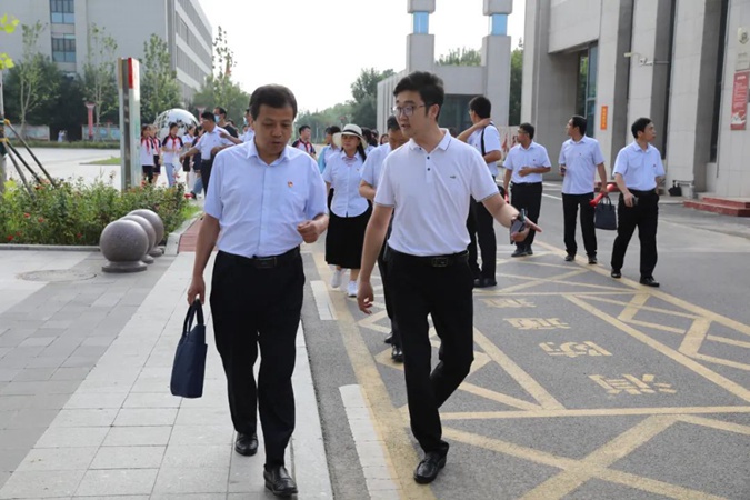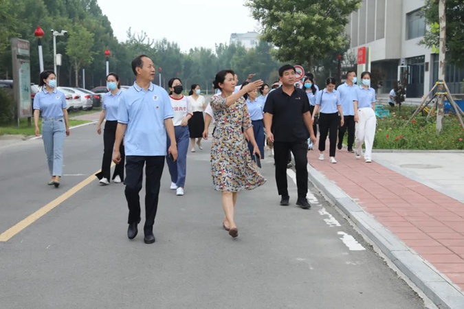 7月28日上午,滨州市城管局党组成员、副局长齐学峰带领局机关19名党员到滨州市高级技工学校开展主题党日活动,学校计划财务科科长任惠霞陪同参观。
