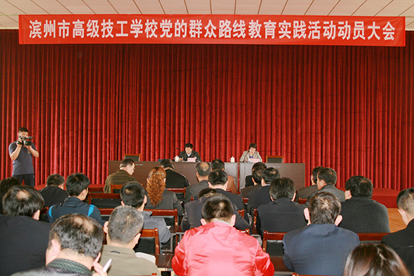 3月26日下午,滨州市高级技工学校召开党的群众路线教育实践活动动员大会。校长赵立军、副校长刘冠利和全校党员领导干部参加会议,党委副书记史文莲主持会议并作动员,区委第二督导组到会指导,组长邓洪飞作重要讲话。