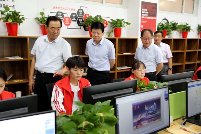 9月11日上午,山东出版集团有限公司、山东出版传媒股份有限公司党委书记、董事长张志华,山东出版集团有限公司纪委书记徐有志,山东出版传媒股份有限公司办公室主任杨海波,山东新华书店集团有限公司副总经理吴梅磊、李运宝,山东新华书店集团有限公司滨州分公司党委书记、总经理王保军一行到滨州市高级技工学校参观调研。滨州市高级技工学校党委书记、校长王树林,党委副书记、副校长孟维赞,党委委员、副校长刘仲凯,党委委员、副校长刘岳,党委委员、纪委书记、市纪委监委监察专员宋志刚陪同。