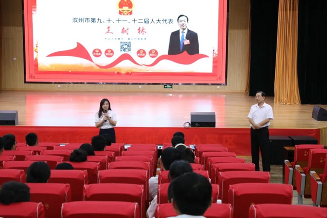 王树林以《让红色精神永放光芒》为题,从渡江小英雄马毛姐的感人事迹讲到习近平新时代中国特色社会主义思想与毛泽东执政理念一脉相承,通过生动的故事、经典的史实、形象的描述,解读了中国共产党人的初心和使命,讴歌了党的光辉业绩和伟大理想。并从“六个突出、六个没发生、四个没想到、培育五爱五自三能的社会主义建设者”等方面介绍了滨州市高级技工学校通过红色办学实现了高质量发展的经验做法。