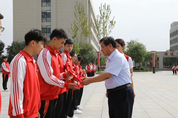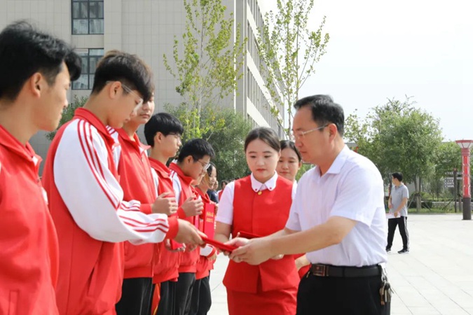 9月25日上午,滨州市高级技工学校全体师生齐聚东方红广场,隆重举行“牢记三个务必 永葆政治本色”全面从严治党主题征文比赛学生组获奖作品颁奖主题升旗仪式。党委副书记、副校长孟维赞出席,党委委员、纪委书记、滨城区纪委监委监察专员宋志刚主持颁奖仪式并讲话。