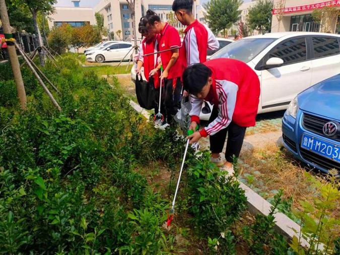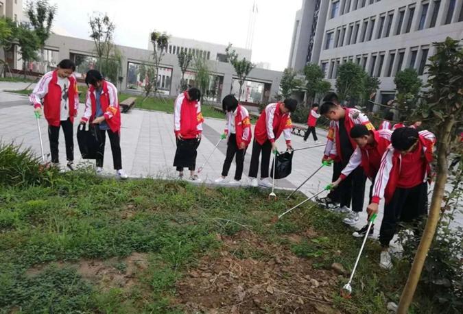 在校园内,每天上午、下午各有160名学生志愿者,对路面、绿化带、草坪等进行拉网式清理。他们不怕苦、不怕累,不放过一片纸屑,一点垃圾,他们用辛勤的汗水让红色校园变得更加整洁、美丽,为全国文明城市创建贡献自己的一份力量。
