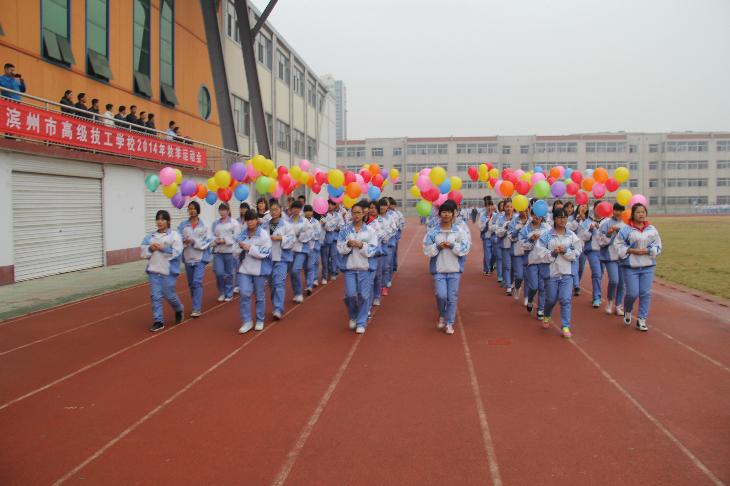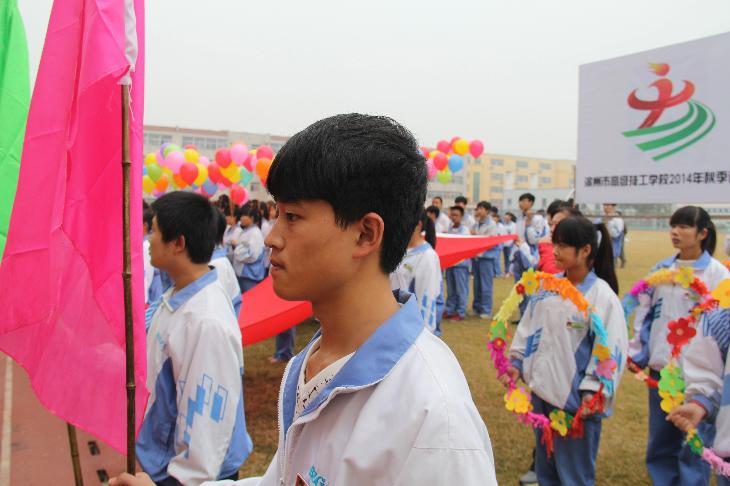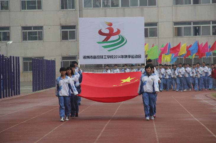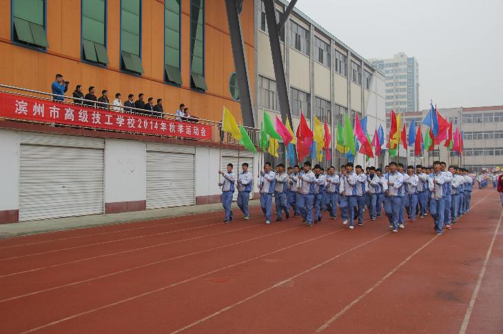 2014年10月30日上午7:50整,沐浴着灿烂的朝阳,副校长刘冠利宣布2014年滨州市高级技工学校秋季运动会开幕。伴随着热烈的音乐、激昂的旋律,同学们以整齐的方阵在国旗队、运动会会徽队、彩旗队、花环队和起球队的引领下,昂首步入会场。按系部顺序,以班级为方队,同学们在行进中进行展示,嘹亮的口号、整齐的队伍,彰显出同学们的青春风采和高昂斗志。