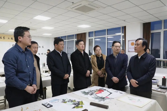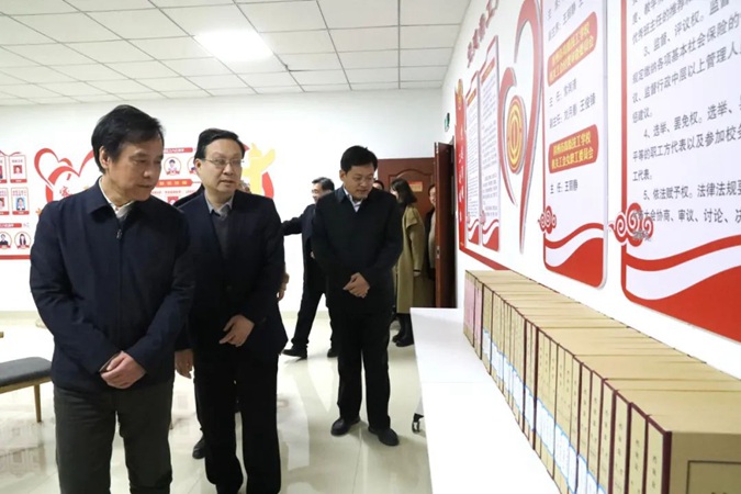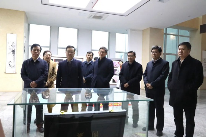 在学生讲解员的引导下,高凤林一行参观了东方红广场、嘉兴楼实训基地,到北平楼参观了职工书画摄影展、伟人塑像厅、雷锋展厅、红色图书馆、百年党史馆、校史馆,在八楼职工之家参观人大代表红色家园、“e盏茶室”,现场观看了教职工书画创作,对学校在职工文化建设及培养劳模、工匠、技能人才方面做出的努力及取得的成绩表示肯定。