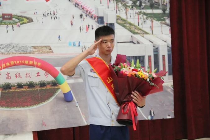 首先,学生代表上台为李梦迪献花,王树林校长为李梦迪颁发“山东省励志之星”奖牌和奖杯。