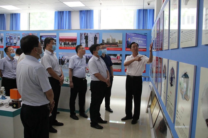 刘树林一行在学校东方红广场听取了学生讲解员对学校办学情况的介绍,参观了韶山楼红色育人展厅,途经红色长廊,参观了井冈山楼智慧教室、产教工坊和遵义楼3D打印创新工作室、古田楼学生公寓、南昌楼红色展藏馆。刘树林一行边走边看边听,沉浸在浓浓的红色氛围中,不时与学校领导、讲解员进行交流,对学校红色办学特色及学生管理工作赞不绝口。