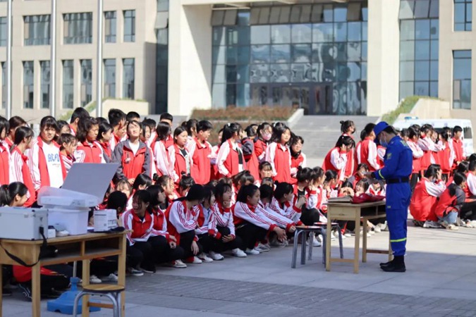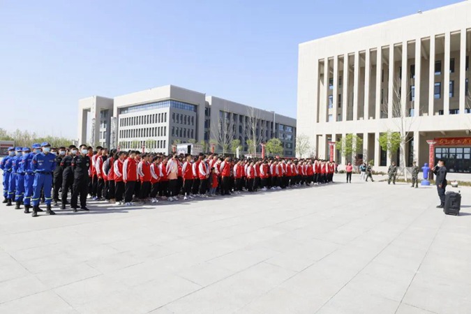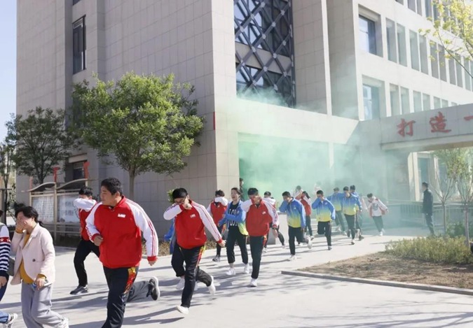 2021年4月14日上午9:00,“呜——呜——呜——”,尖锐的警报在滨州市高级技工学校校园内突然响起。各班上课教师立即组织学生离开教室,紧张但有序地从各个安全出口撤离教学楼,向学校东方红广场快速跑去。全校4000余名师生全部安全撤离完毕仅用时5分钟。