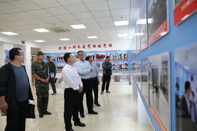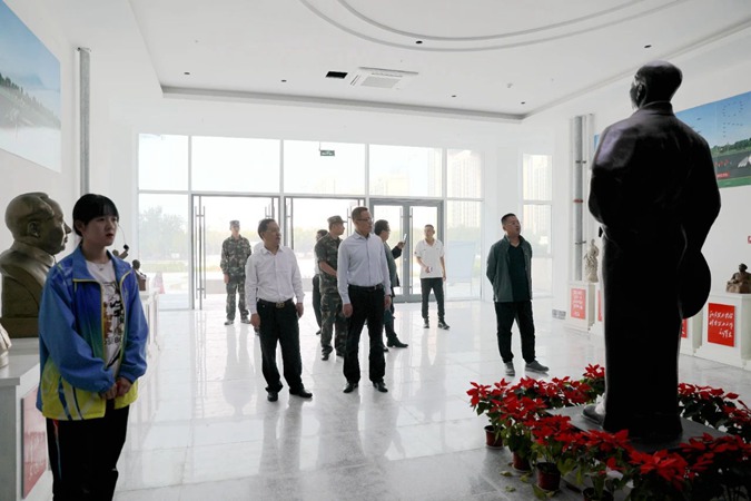 陈振一行参观了学校渤海革命老区红色教育基地AAA景区,走进产教工坊、3D打印工作室等特色教学区及学生公寓,了解学生学习、生活情况,在北平楼参观了学校图书馆建设。