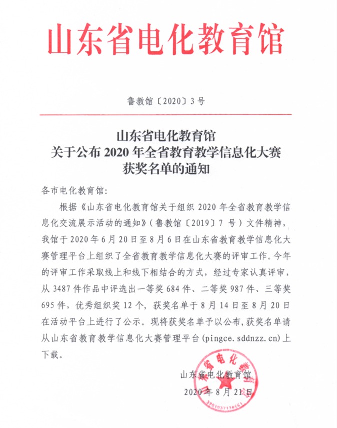 在2020年全省教育教学信息化大赛中,滨州市高级技工学校(滨州市中等职业学校)多名教师再获佳绩。