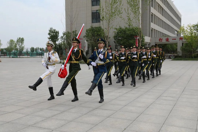 伴随着雄壮有力的国歌声,五星红旗冉冉升起。全体同学齐唱《义勇军进行曲》,澎湃的歌声和昂扬的姿态,充分出展现滨州市高级技工学校全体师生良好的精神风貌。