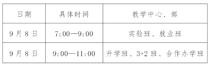 1.报到时间:2021年9月8日。实行错时错峰报到入学,具体安排如下: