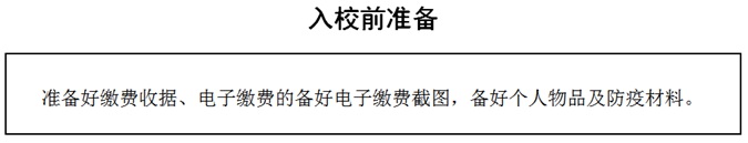 云天收夏色,木叶动秋声。在大家的期待与盼望中,我们终于等来了进入新校园继续学习深造的美好时刻。世界那么大还是遇见你,让我们携手走过四季,在新的起点实现新的梦想。为了帮助大家顺利入校就读,现将新生开学相关事宜温馨告知如下,请大家做好开学准备: