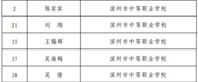 喜报 | 滨州市中等职业学校(滨州市高级技工学校)5名教师入选第一届滨州市中等职业教育青年技能名师