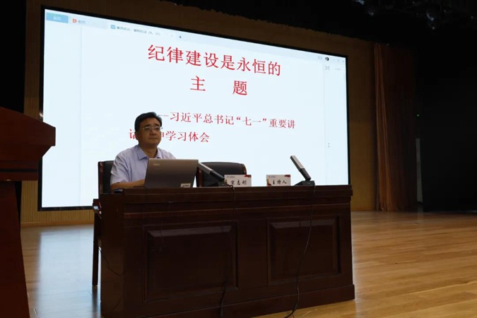 宋志刚以《纪律建设是永恒的主题——习近平总书记“七一”重要讲话精神学习体会》为题,带领大家重温了习近平总书记七一讲话,结合中国共产党发展历程以及大量真实案例分享了自己的学习感悟与心得。并从把红色教育与廉政教育融合起来,以红色育人助力全面从严治党落到实处;强化“高压线”和“底线”意识,内化于心、外化于行,学法守法;廉洁从教,严格执行教育教学日常规范三个方面对全体教职工提出期望与要求。