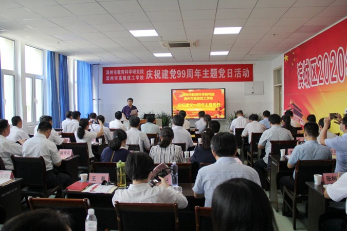 6月24日下午,滨州市高级技工学校与滨州市教育科学研究院联合举办庆祝建党99周年主题党日活动,滨州市教育科学研究院全体党员与滨州市高级技工学校10个支部的30名支部委员,面对党旗,举起右拳,重温入党誓词,回顾曾经的庄严承诺与坚定决心。