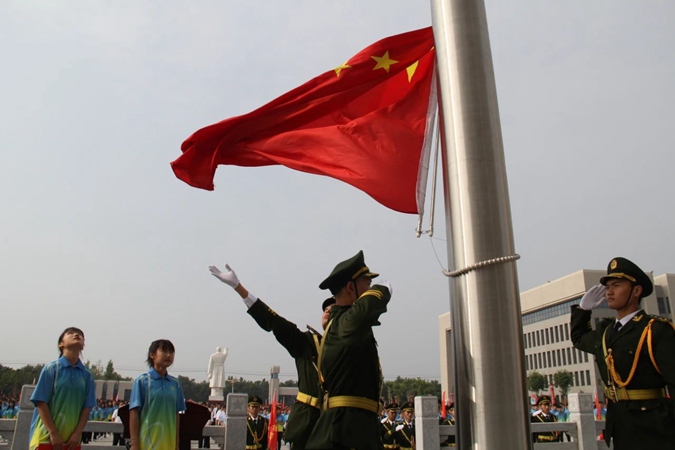 6月29日早上八点,在学校东方红广场,举行升国旗仪式。在庄严雄壮的国歌声中,五星红旗冉冉升起,全校3600名师生齐声高唱国歌,行注目礼,表达对祖国的无限热爱和崇高敬意。