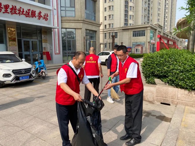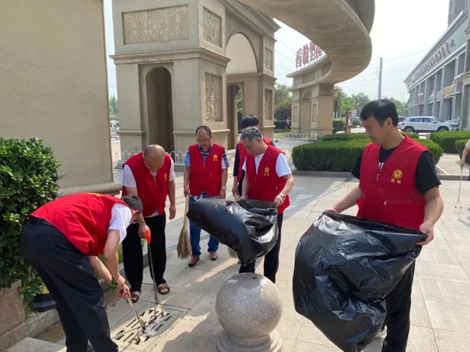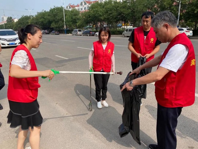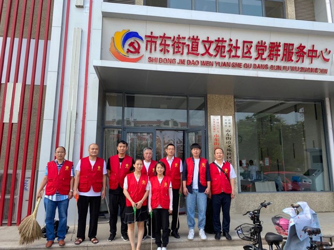 6月29日上午,学校机关党委组织党员先锋服务队走进市东街道文苑社区,与社区联合参加文明城环境整治活动,到社区街道进行路面垃圾清理。