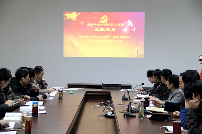 2017年12月15日,市十九大精神宣讲团成员、校长王树林同志应邀给滨州市高级技工学校全体党员干部上了一堂生动的十九大精神党课。