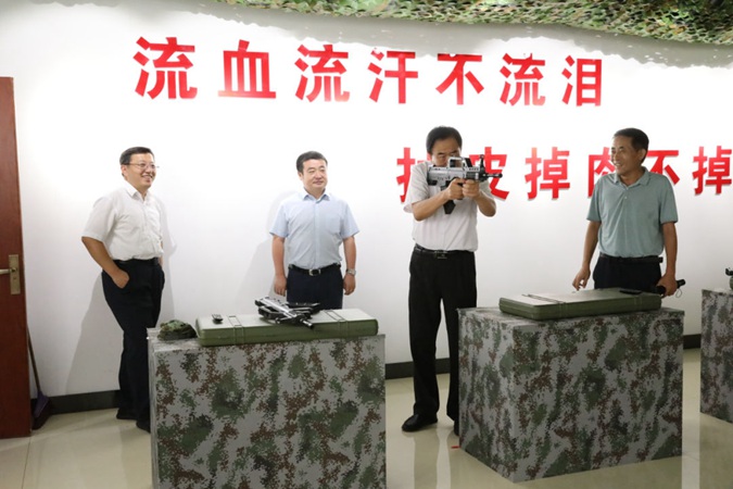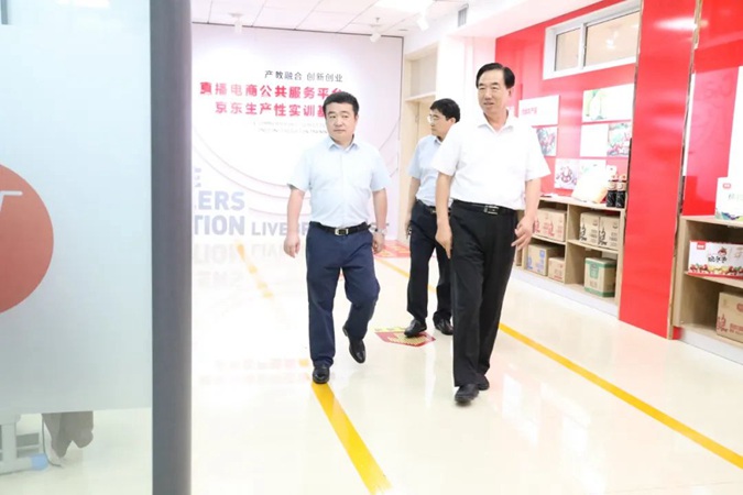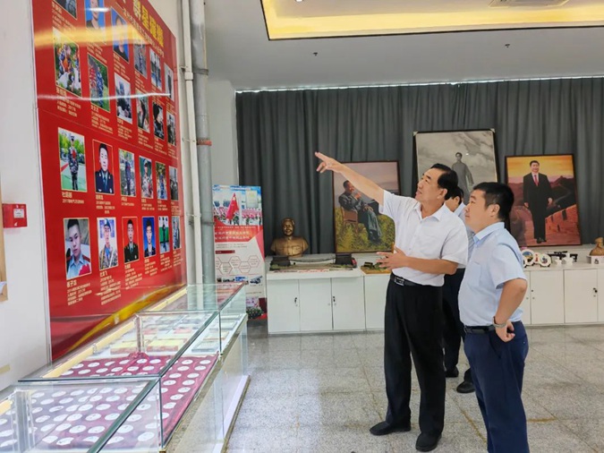 王志刚参观了嘉兴楼实训中心、东方红广场、井冈山楼产教工坊和京东直播实训室,到北平楼参观了伟人塑像厅、红色藏品展馆、将军书画厅、红色图书馆、百年党史馆、国防教育展馆等,对学校红色办学给予高度赞扬。