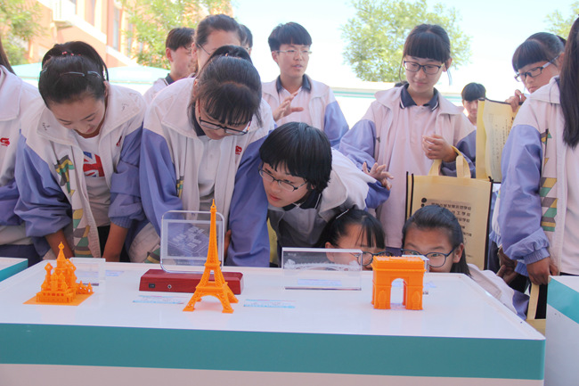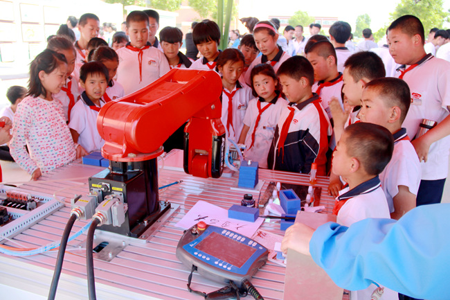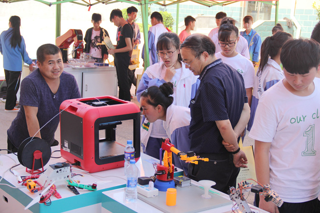 开展后,我校的学生在展台前熟练的向参观师生介绍参展作品,并且进行互动。参观师生对我校的师生作品赞不绝口,引起了大家对我校和职业教育的重新认识。有趣的是,该校的一些小学生在课间活动的时间蜂拥而至,把展台围了个水泄不通,把玩着展品,爱不释手,问这问那。这让我们看到了职业教育的希望,找到了职业教育的方向,感受到了职教人的责任。