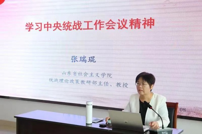 此次培训班邀请了省社会主义学院张瑞琨教授、刘柳教授、程芳教授、吉秀华教授分别对中央统战工作会议精神、铸牢中华民族共同体意识、《中国共产党统一战线工作条例》、新时期党外人士履职建言能力建设进行了解读。