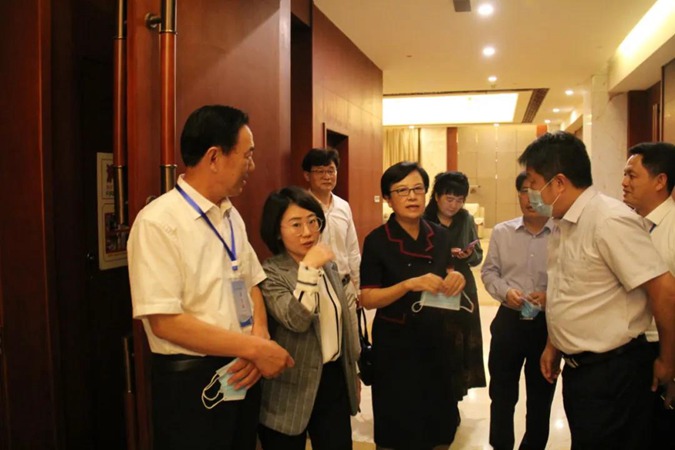 ▲王树林在全省部省共建国家职业教育创新发展高地工作推进会议上作典型发言,会后与中国职业教育协会会长鲁昕、省教育厅厅长邓云峰等一起交流