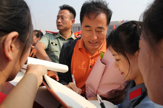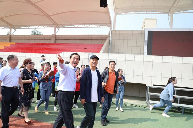 他们热情地和同学们打招呼,给师生签名,与大家合影留念,并对全校广大青年学子提出殷切希望。在参观校园的过程中,两位艺术家非常赞赏校长的情怀,惊叹于校园的宏美、壮观。