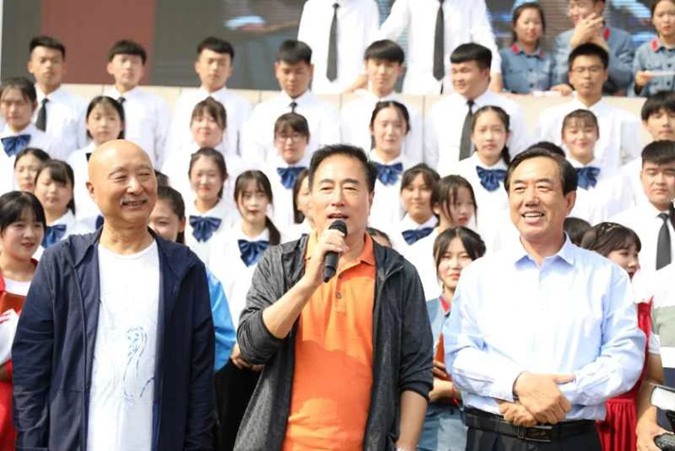 陈佩斯表示,已经和杨立新合作演出《戏台》281场,在时间非常紧张的情况下,专程来到滨州市高级技工学校。正值学校举行庆祝新中国成立71周年红色歌咏比赛,两位艺术家来到现场,与师生进行了互动、交流。