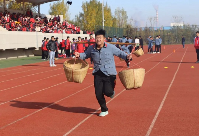 挑军粮、一分钟跳绳踢毽、定点投篮等8个项目,每个比赛项目都与革命战争情景相融合,让学生在强身健体中体会艰苦奋斗、自强不息的红色革命精神。