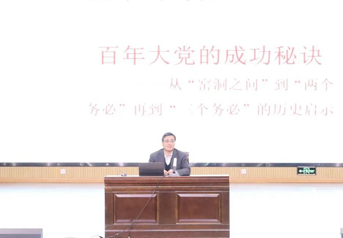 随后,宋志刚以《百年大党成功的密码——从“窑洞之问”到“两个务必”再到“三个务必”的历史启示》为题,从毛泽东与黄炎培的“延安对”、“两个务必”与赶考之路、自我革命破解历史周期率、“三个务必”与开启新征程四个方面,讲了主题党课。
