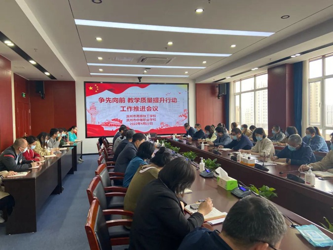 4月22日上午,滨州市高级技工学校召开了争先向前、教学质量提升工作推进会。学校党委副书记、副校长孟维赞,党委委员、副校长刘岳,各教学中心部主任、副主任、教研组长、教学能力大赛团队成员及教务科全体工作人员参加会议,教务科科长王世福主持。