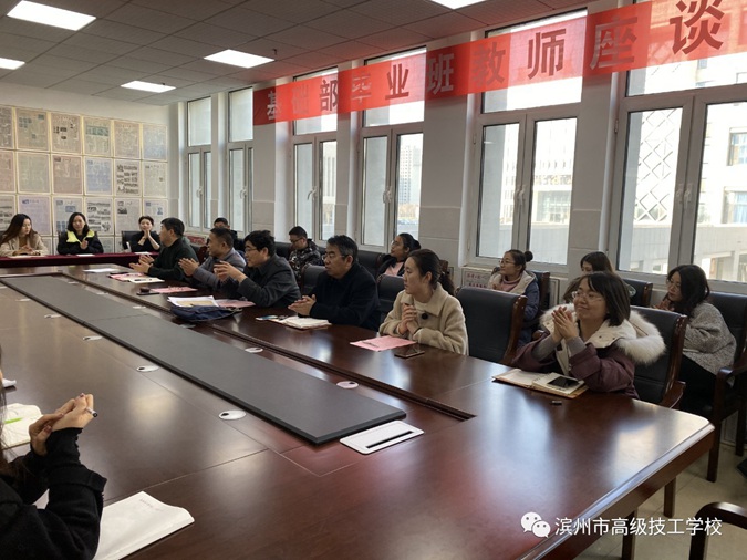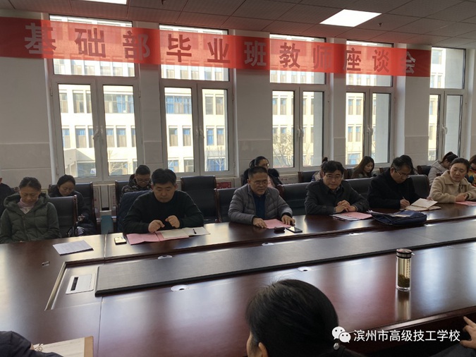12月6日下午,滨州市高级技工学校在韶山楼二楼会议室召开基础部毕业班教师座谈会,基础部全体毕业班任课教师就学校毕业班的教学、班级管理等方面工作进行了交流。学校党委委员、副校长刘岳,教务科科长赵鹏飞出席座谈会并讲话,基础部主任张绪强主持。