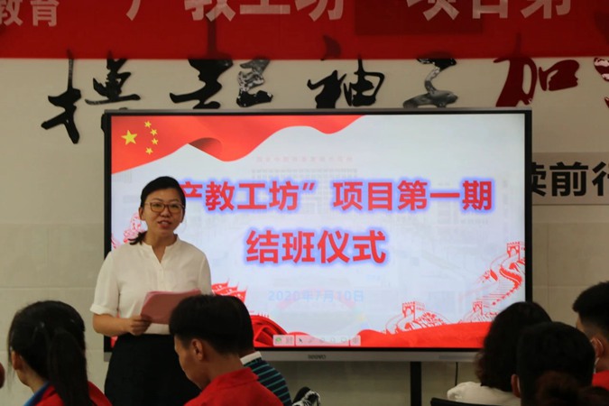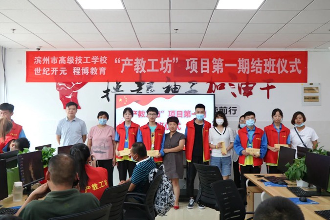 7月10日上午,滨州市高级技工学校电子商务专业“产教工坊”项目第一期结班仪式在井冈山楼107实训室隆重举行。经贸管理教学中心主任毛岳军、山东程博教育科技有限公司总经理丁清雷、2018级电子商务专业全体学生及其家长共同参加了本次结班仪式。