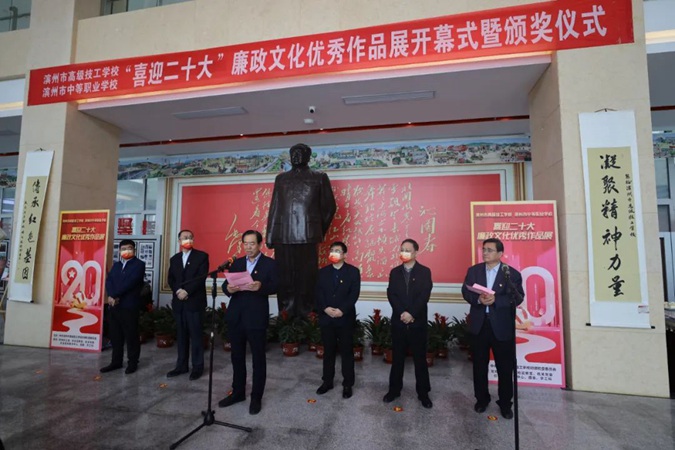 翰墨飘香润初心,清风袭人扬廉政。为迎接党的二十大胜利召开,展现学校全面从严治党取得的新成效和红色文化浸润下全体师生的精神风貌,10月14日,滨州市高级技工学校在北平楼一楼展厅隆重举行“喜迎党的二十大”廉政文化优秀作品展开幕式暨颁奖仪式。