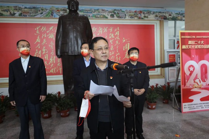 王树林在讲话中指出,本次作品展是学校推进廉政文化建设的一项重要内容,是意识形态工作的重要组成部分,是落实新时代党中央加强党风廉政建设和反腐败工作的重要举措,也是落实区纪委监委《关于在全区开展“廉洁文化宣传月”的通知》的实际行动。全体党员干部要自觉做廉洁从教、勤政为民的表率,做干事创业、担当作为的楷模,为红色学校的高质量发展做出自己的贡献,以实际行动向党的二十大胜利召开献礼!