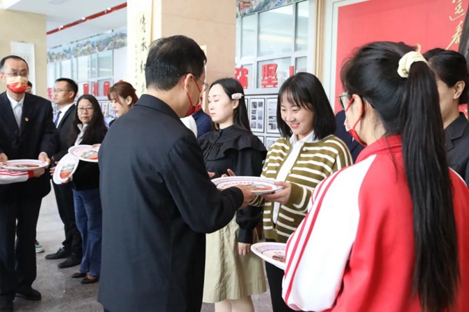 教师组一等奖获得者尹安琪发言:此次廉政文化作品展,数百名学生踊跃报名、积极参加,争相为学校红色文化建设增砖添瓦;作为新时代青年教师,要坚守职业道德,廉洁从教,积极传承红色基因,培养时代新人,为红色学校的大发展贡献自己的力量。