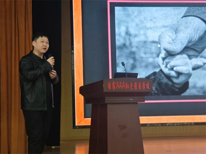2021级级部主任付明军以“父母的手”开篇,为学生作了5分钟的励志演讲《接棒、冲刺、过线》。
