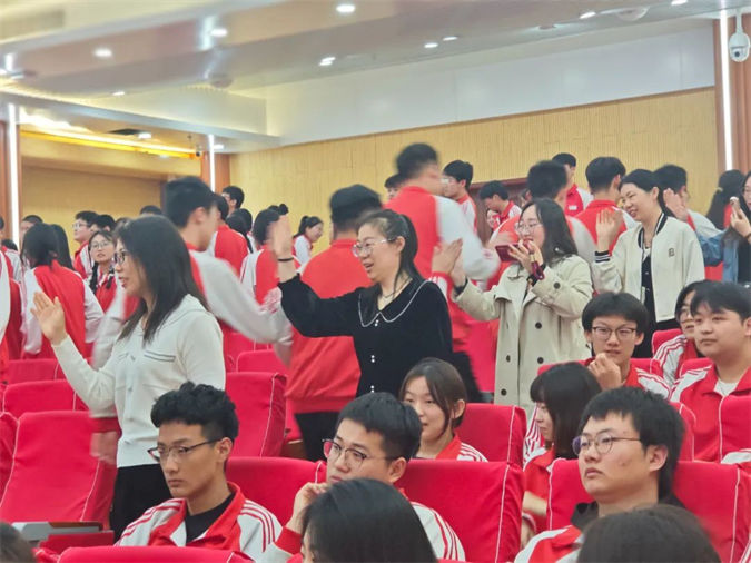 最后,全体学生进入“三十三天鱼跃龙门”启动仪式。学生依次上台与付明军老师击掌立誓,进入披红挂彩的“孟门津”,这是冲刺的起点,也是龙门的前站,学生逆流而上,奋勇向前。途中,升学部主任张绪强带领教师代表与班主任代表依次与学生击掌,送上真挚的祝福,祝愿每一位学生最终能够鱼跃龙门,冲刺过线。