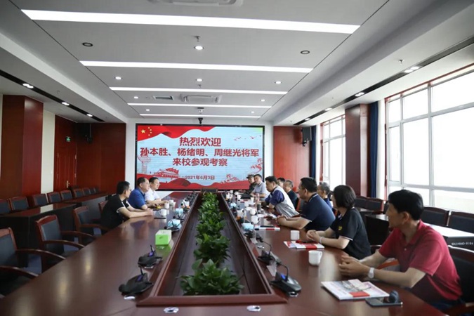 孙本胜将军一行参观了东方红广场、嘉兴楼实训中心、古田楼学生公寓,到北平楼参观了百年党史馆、老渤海展馆、国防教育展馆,对我校红色校园建设赞不绝口。