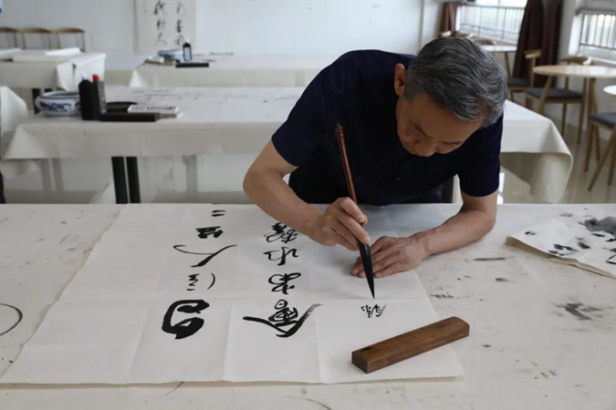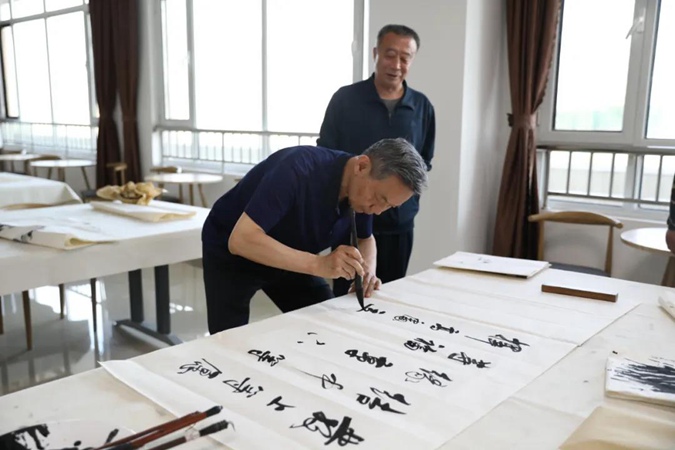 座谈结束后,将军们在学校北平楼八楼书画室现场挥毫泼墨,为滨州市高级技工学校更加美好的明天留下了美好的祝愿。
